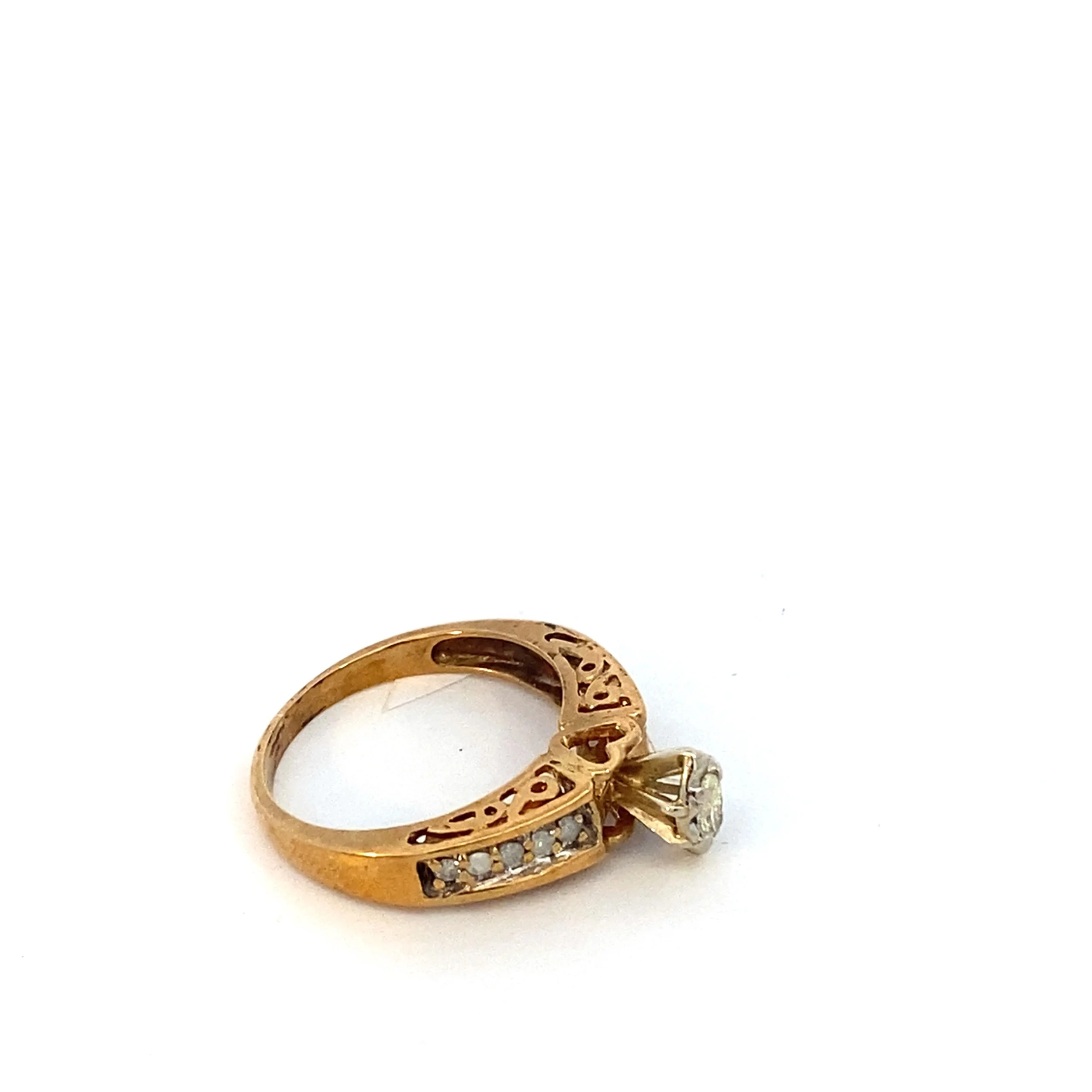 14KT yellow gold and .50 carat diamond ring .